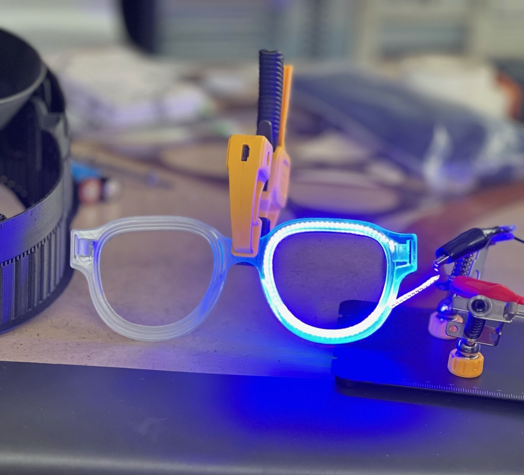 Electric Indigo worked with Hardware Park, a medical technology (MedTech) development center in Birmingham. Backed by the Innovate Alabama Tax Credit Program, industrial designers and hardware and firmware engineers helped move the device from concept to working form. Completed in December 2025, the initial builds include custom LED filaments, integrated electronics and frames produced on site.